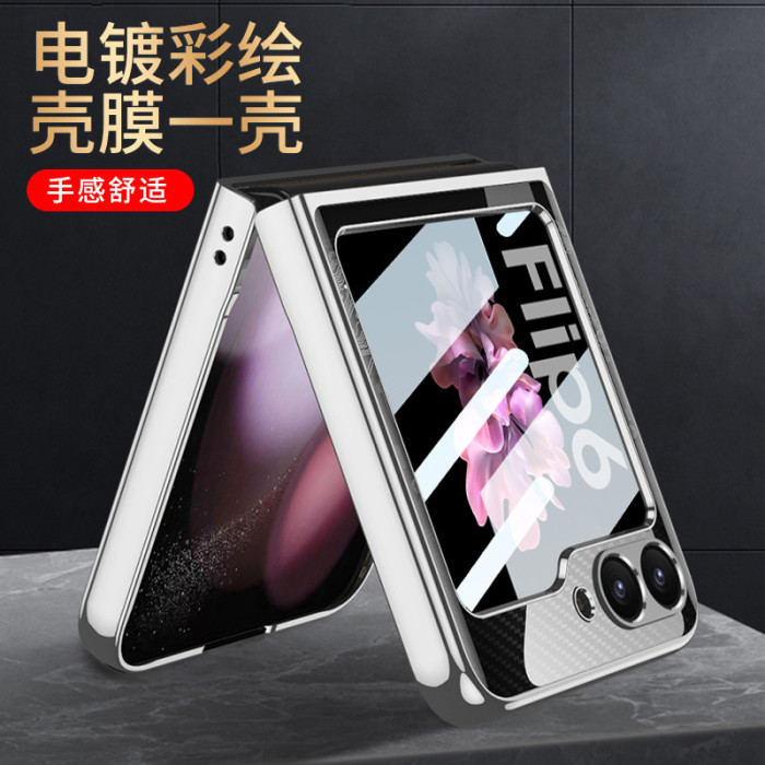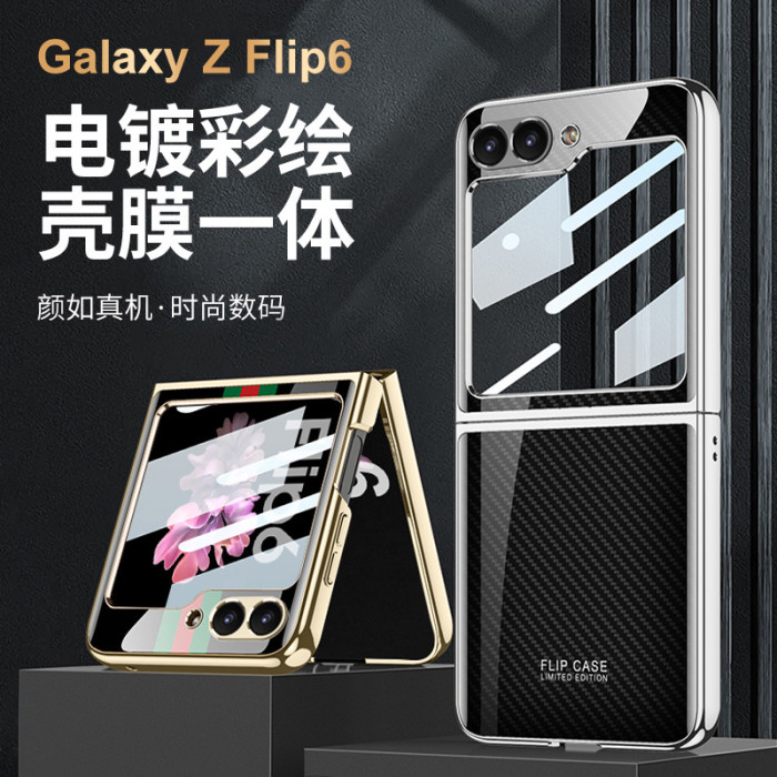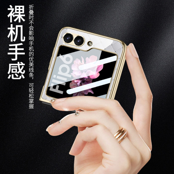 適用三星flip6手機殼彩繪編織紋摺疊螢幕手機殼PC玻璃硬殼