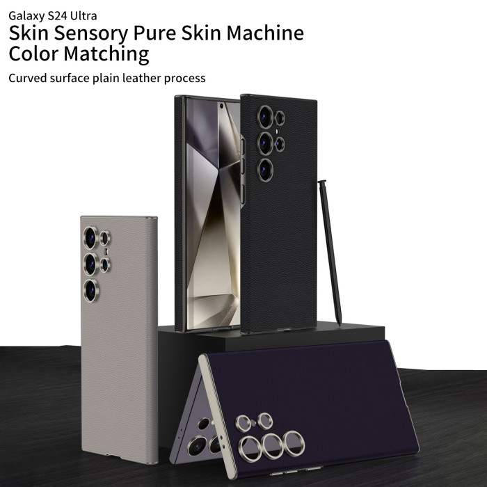 適用於三星S24Ultra曲面素皮手機殼GalaxyS24u皮革商務防摔保護套
