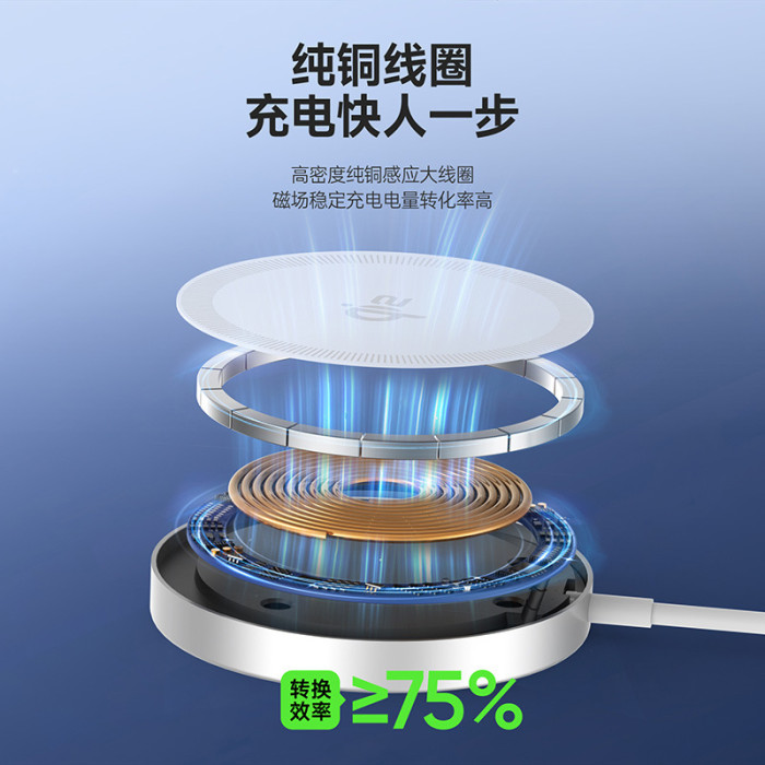 鋁合金強磁吸Qi2無線快充適用蘋果15W手機耳機無線充電器