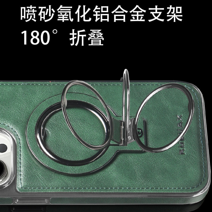 適用iPhone16ProMax磁吸手機殼蘋果15ProMax電鍍皮紋支架14保護套