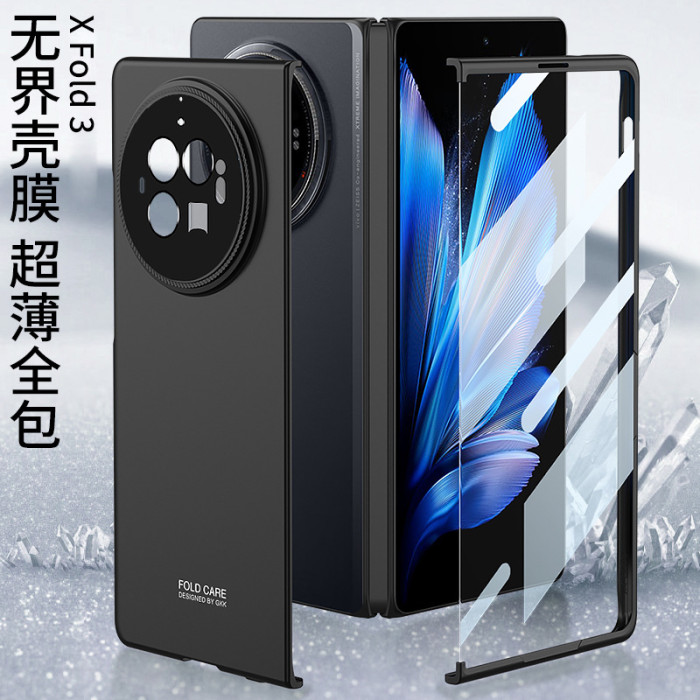 適用vivoxfold3pro手機殼磨砂無界殼膜x fold3摺疊螢幕保護套簡約套