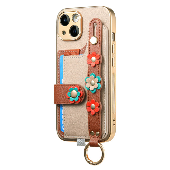 適用蘋果16電鍍立體花手機殼手腕帶安全釦iPhone15保護套14錢包殼