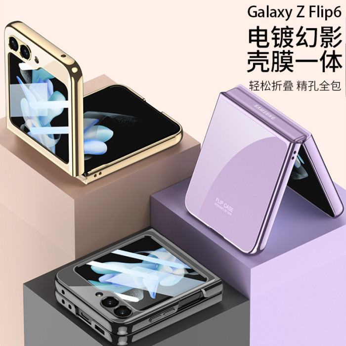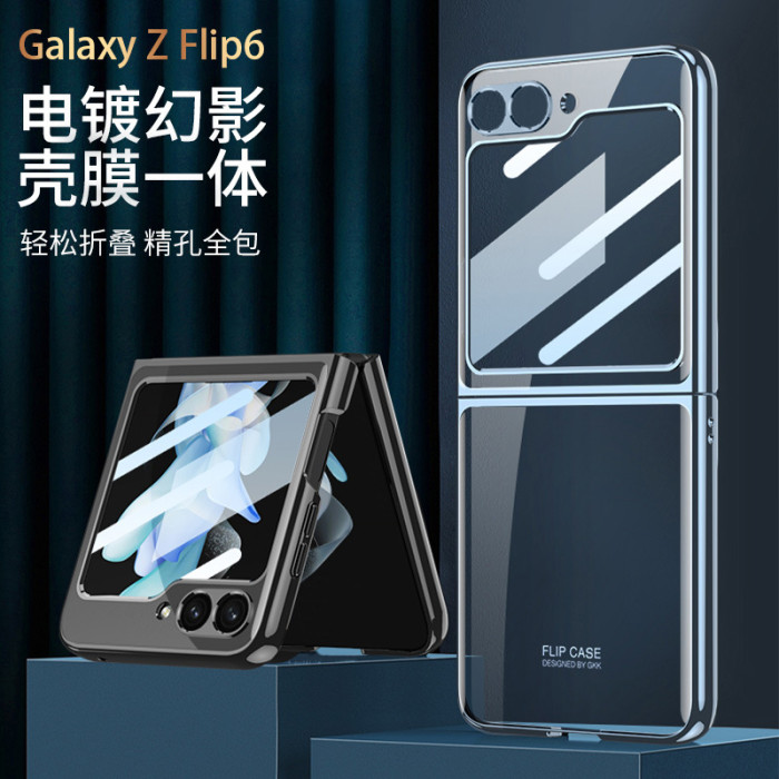 適用三星flip6手機殼FLIP6摺疊螢幕電鍍透明殼膜一體輕奢超薄保護殼