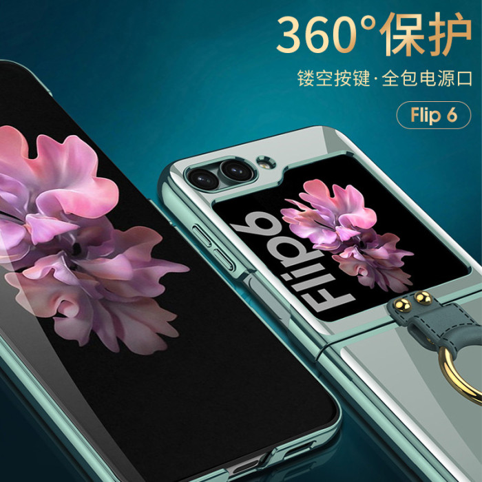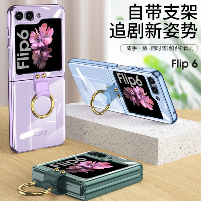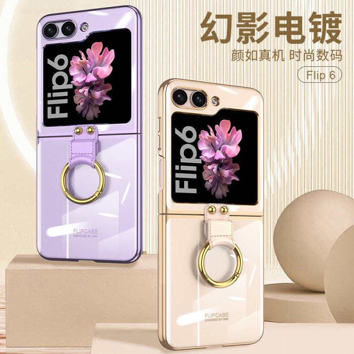 適用三星Z flip6手機殼新品指環支架flip6電鍍幻影防摔保護套