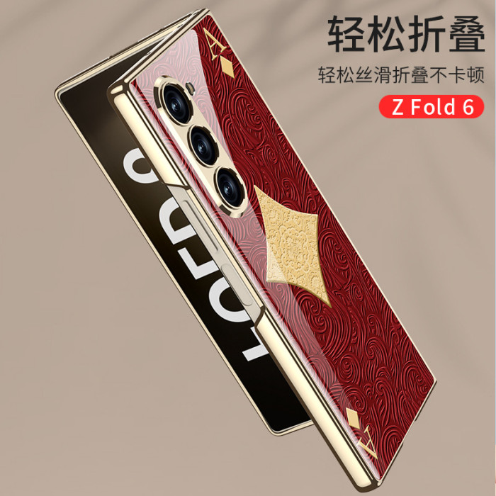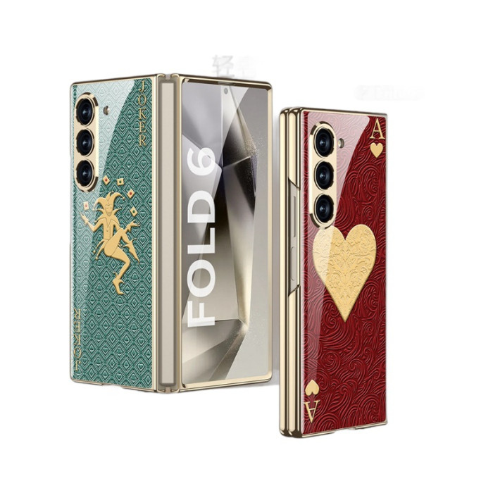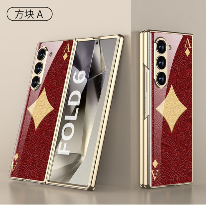 適用三星fold6摺疊螢幕手機殼fold7創意風輕奢電鍍硬殼玻璃彩繪