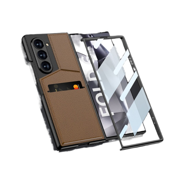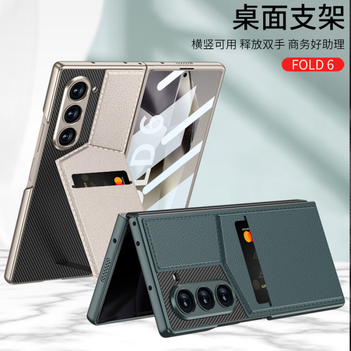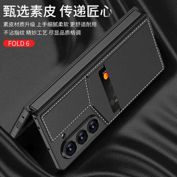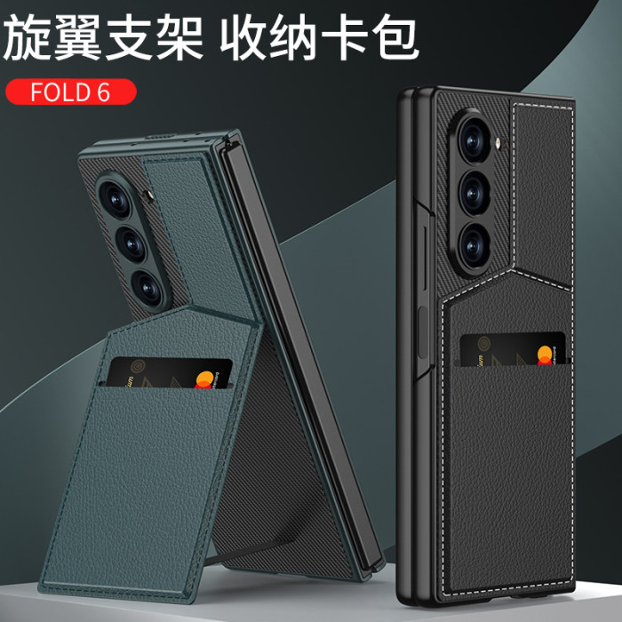 適用三星ZFold6手機殼卡包支架Fold6素皮殼膜一體新款保護殼