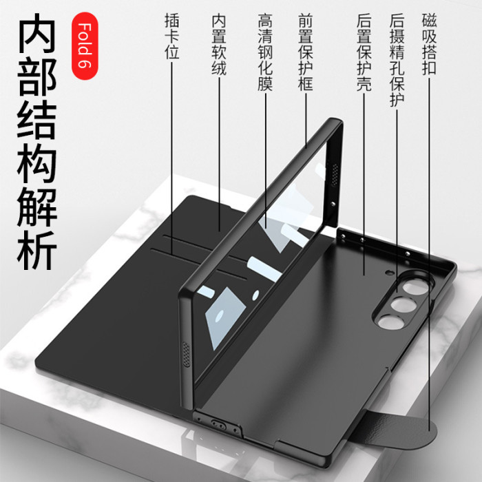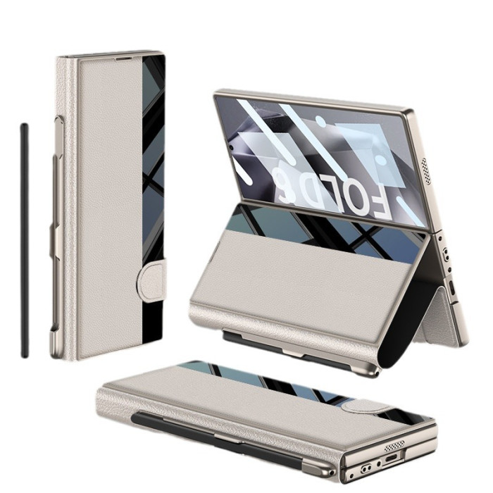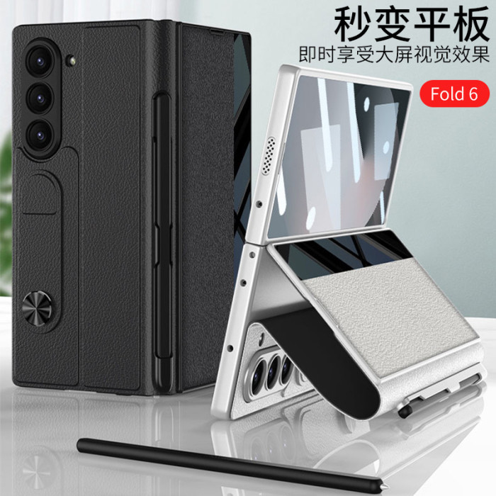 適用三星Z fold6手機殼素皮支架摺疊螢幕防摔翻蓋皮套殼膜一體筆槽