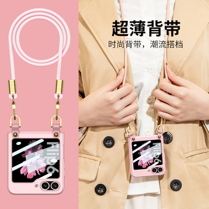 新款適用zflip6手機殼時尚女生斜背背帶手機殼創意Zflip6保護套