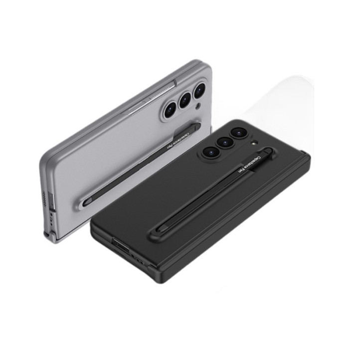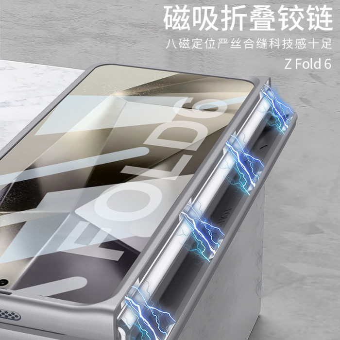 適用三星ZFold6手機保護套簡約硬殼磨砂鉸鏈轉軸一體筆槽折曡外殼
