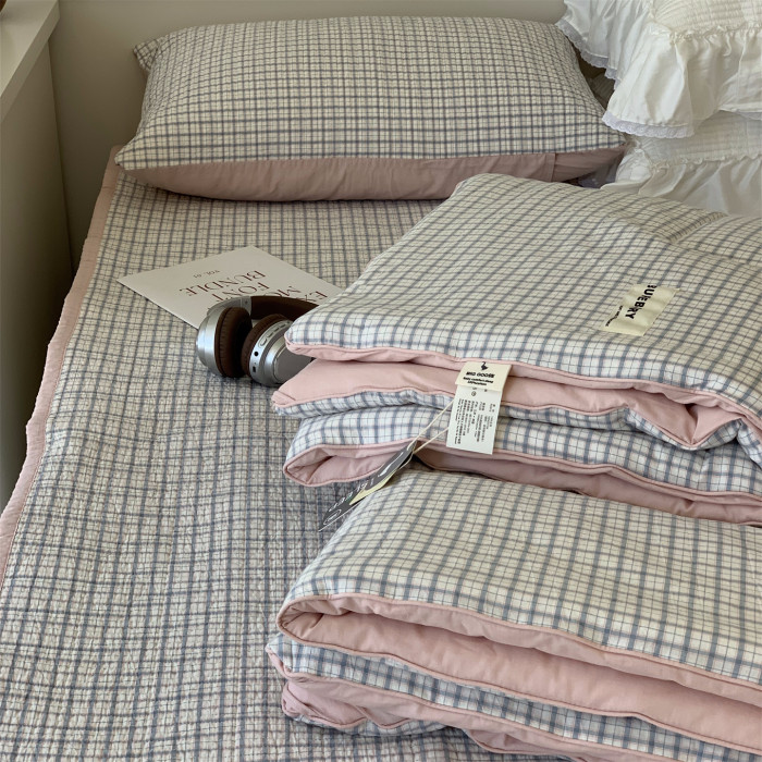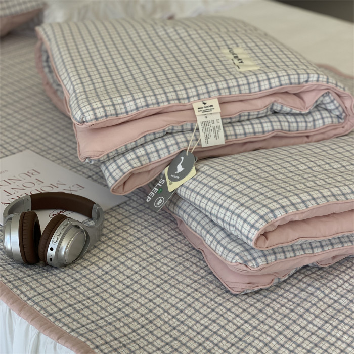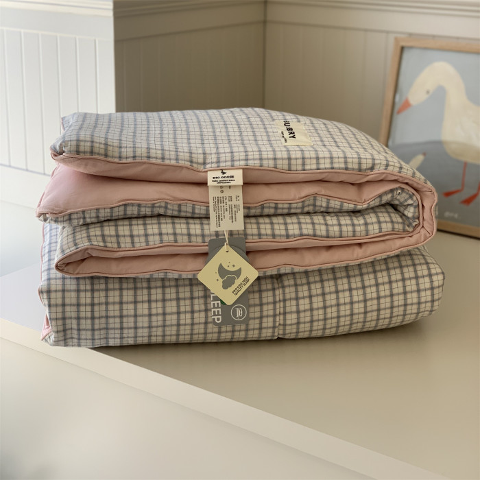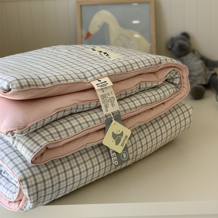大鵞學生被子春秋被1.5m全棉無印格子四季被可洗學生宿舍單人秋被