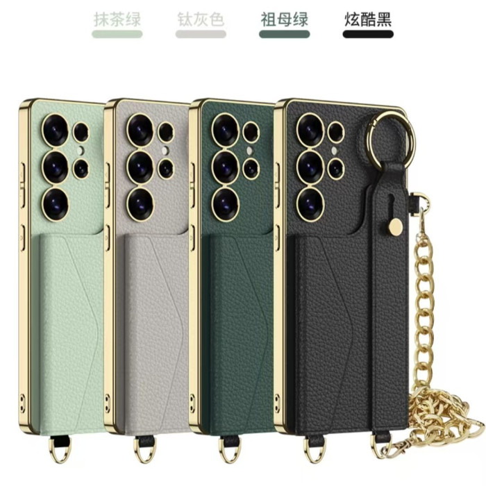 SM-S25Ultra電鍍素皮腕帶卡包