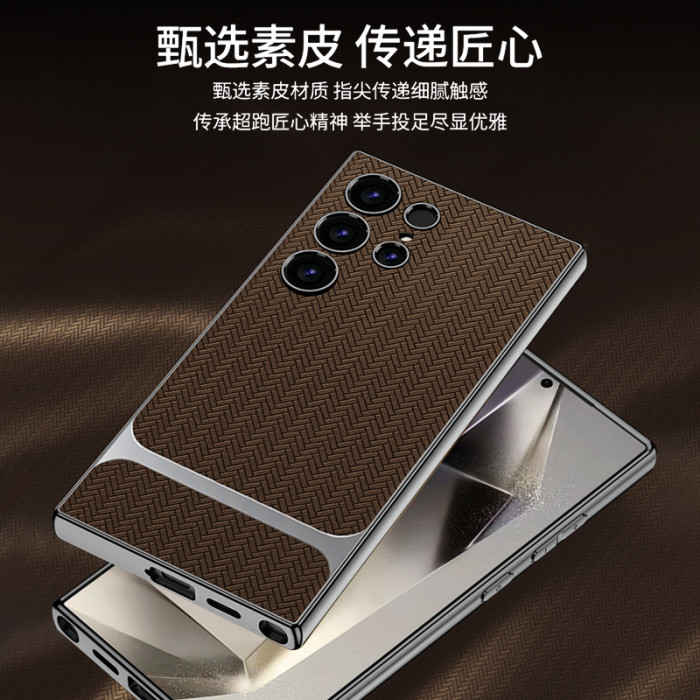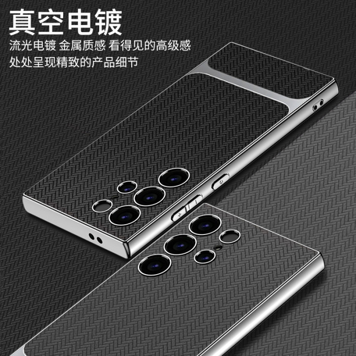 適用三星s24ultra手機殼s23ultra超薄電鍍高檔素皮精孔鏡頭防摔套