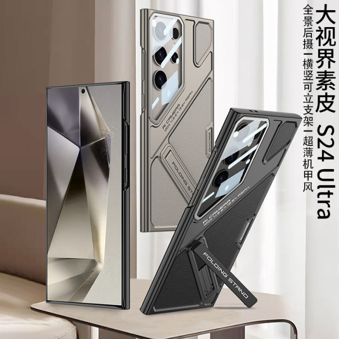 適用三星S24ultra手機殼官方同款視界支架s23ultra輕奢防摔素皮套
