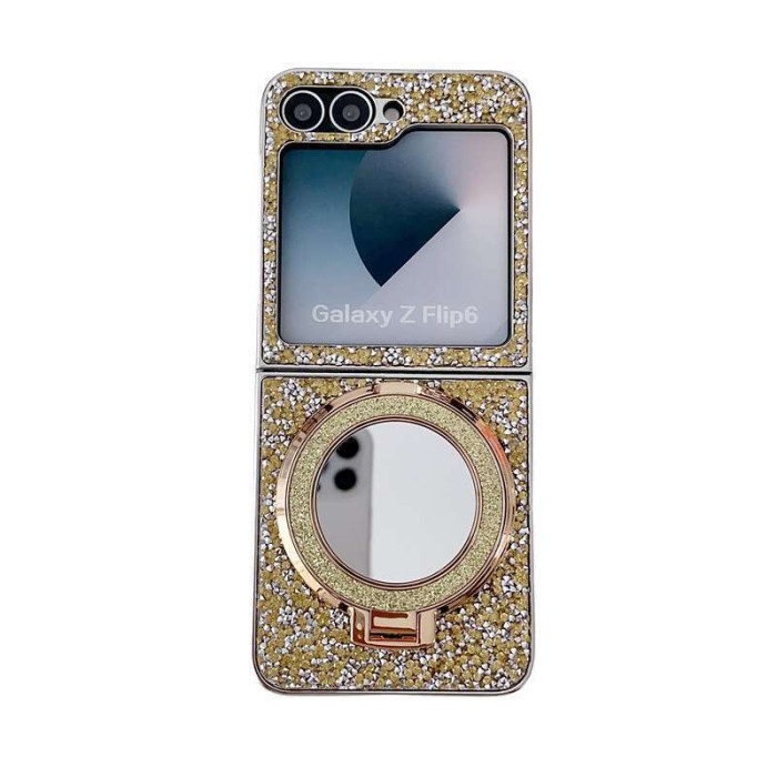 適用三星ZFilp7電鍍閃鑽手機殼鏡面ZFilp3/4磁吸ZFilp6折曡支架新