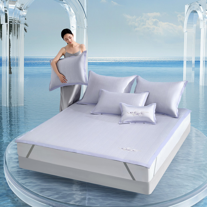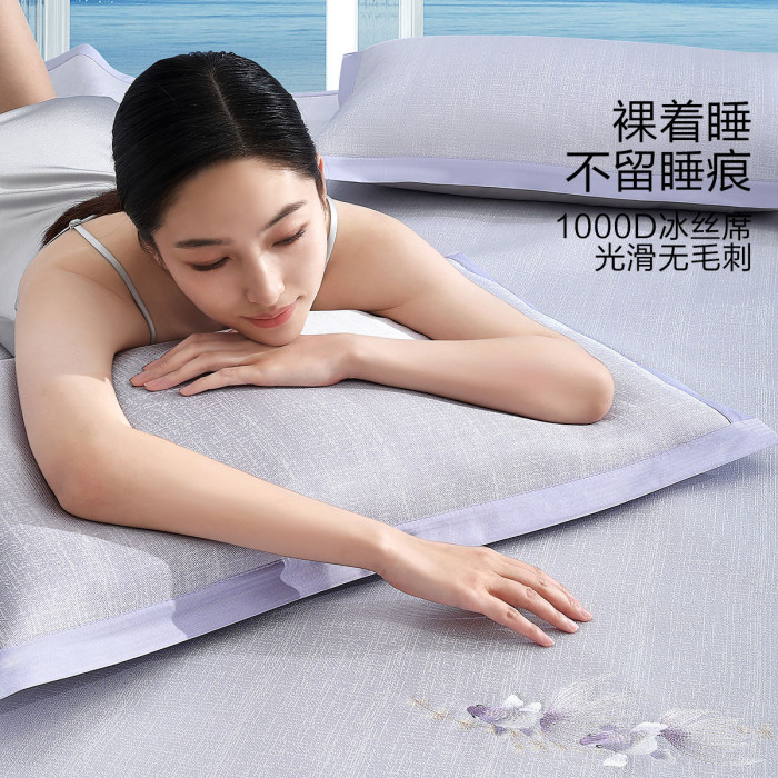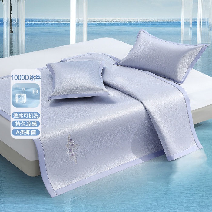 水星家紡涼蓆1000D冰絲蓆子可水洗A類抑菌可折曡刺綉涼感蓆床品