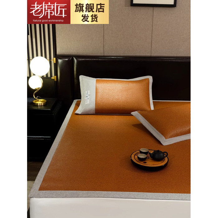老蓆匠涼蓆藤蓆2025新款加厚高級刺綉天然家用裸睡蓆子學生宿舍
