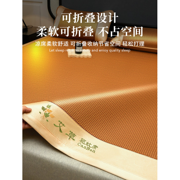 升級抗菌加厚-單床蓆-刺綉款-步步高【艾草安神冰絲藤蓆】