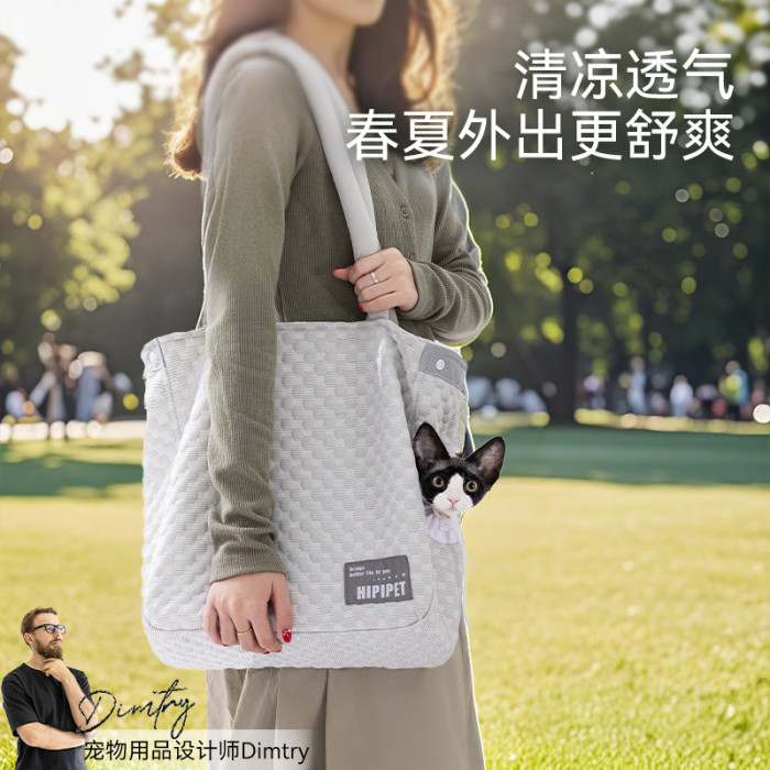 春夏季貓咪涼感冰豆豆外出貓包狗狗可探頭單肩包簡約寵物包手提包
