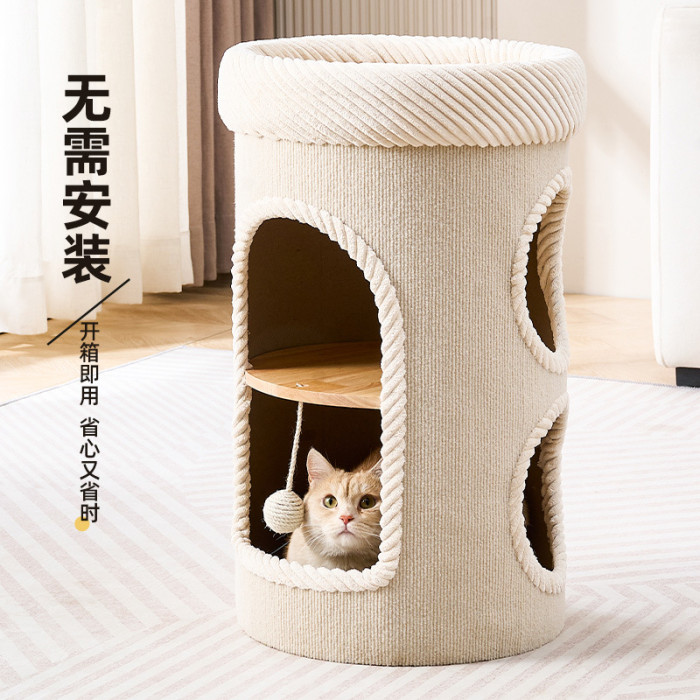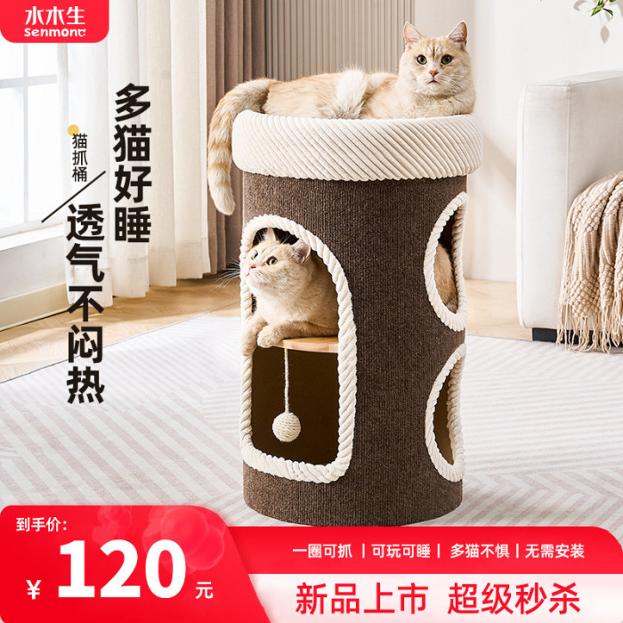 貓窩家用不佔地貓爬架一體多層貓咪睡窩耐磨不掉屑貓抓桶貓窩夏季