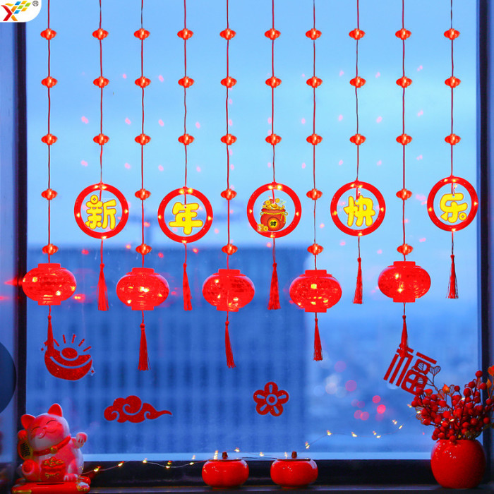 發光新年快樂燈籠掛飾2025蛇年春節氛圍裝扮陽台窗戶裝飾場景布置