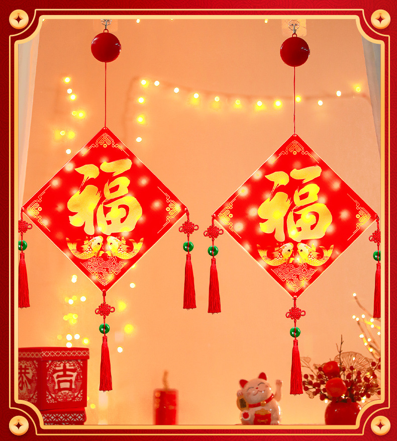 發光蛇年福字門貼掛件2025新年春節過年氛圍窗戶場景裝飾布置掛飾