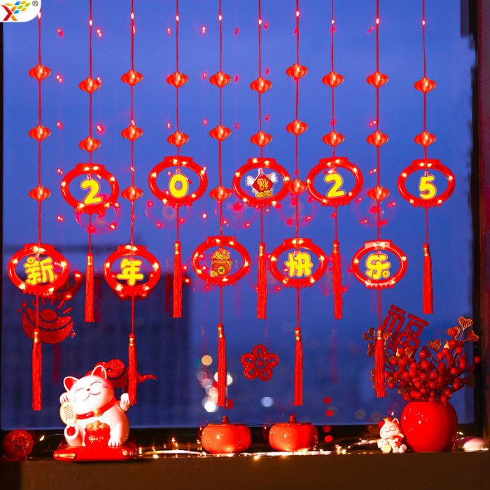 發光新年快樂LED燈籠掛飾2025蛇年春節過年氛圍窗戶裝飾布置