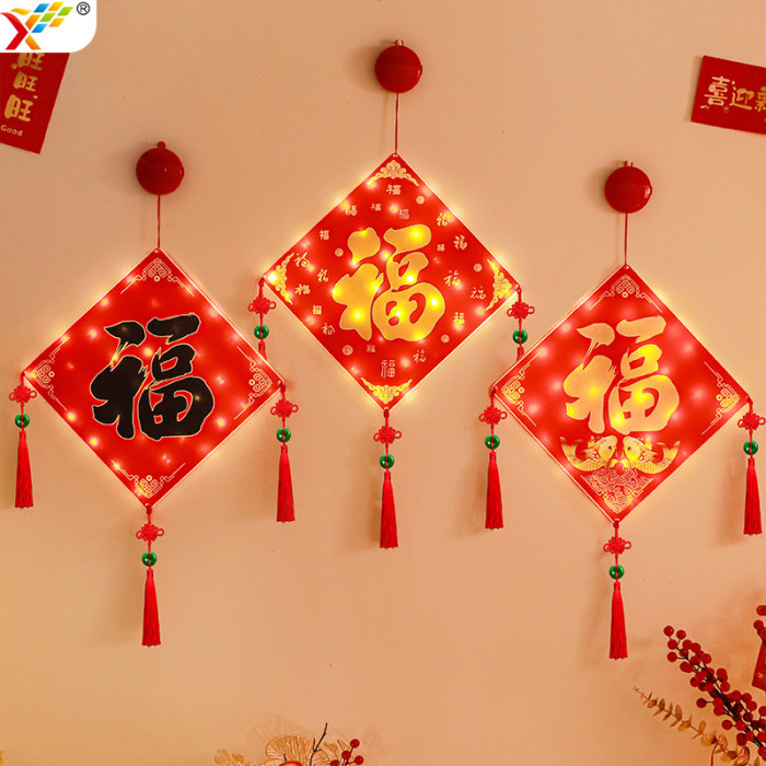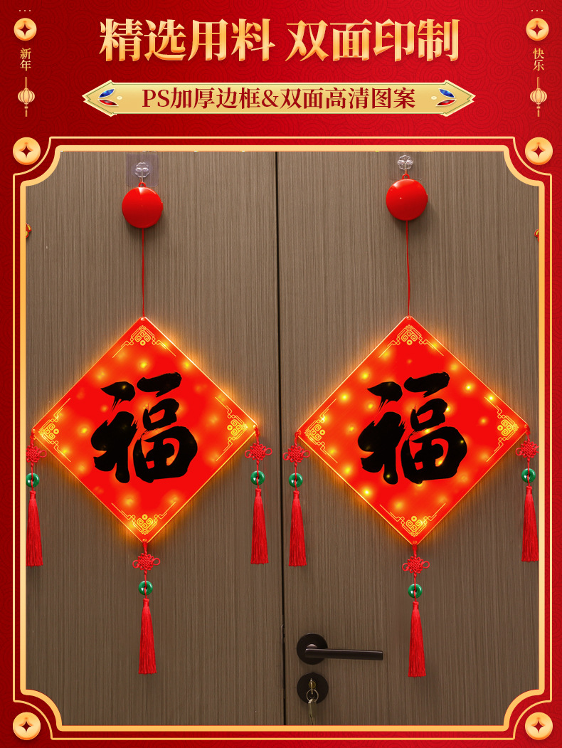 新年發光福字流蘇結掛件2025蛇年春節氛圍客廳裝飾布置掛飾