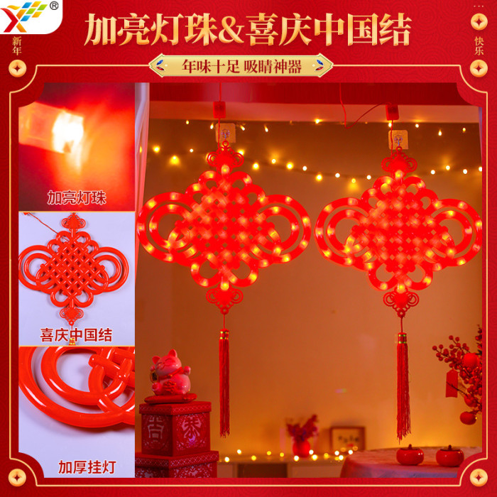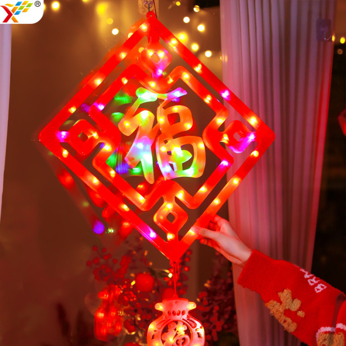 新年發光福字結掛件2025蛇年春節氛圍玻璃窗貼裝飾布置掛飾