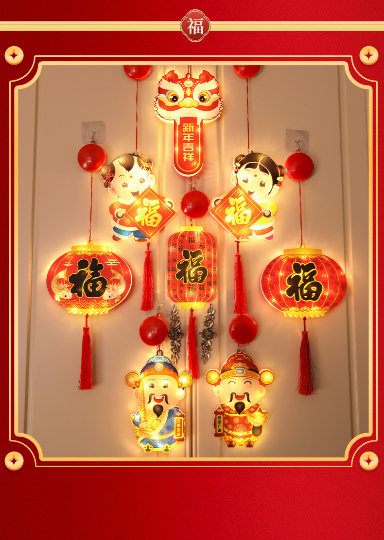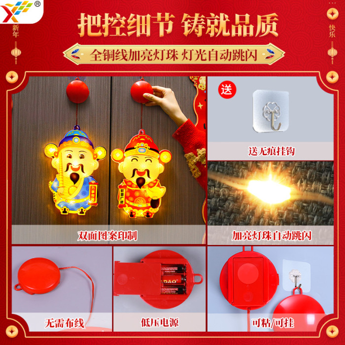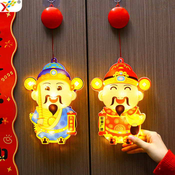 新年發光財神爺門貼掛件蛇年春節過年氛圍入戶大門上裝飾布置掛飾