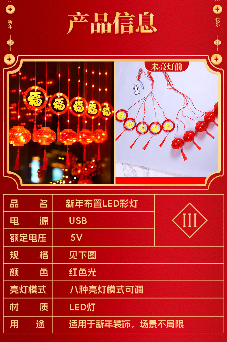 2025新年快樂燈籠環福字珠簾燈【USB遙控款】
