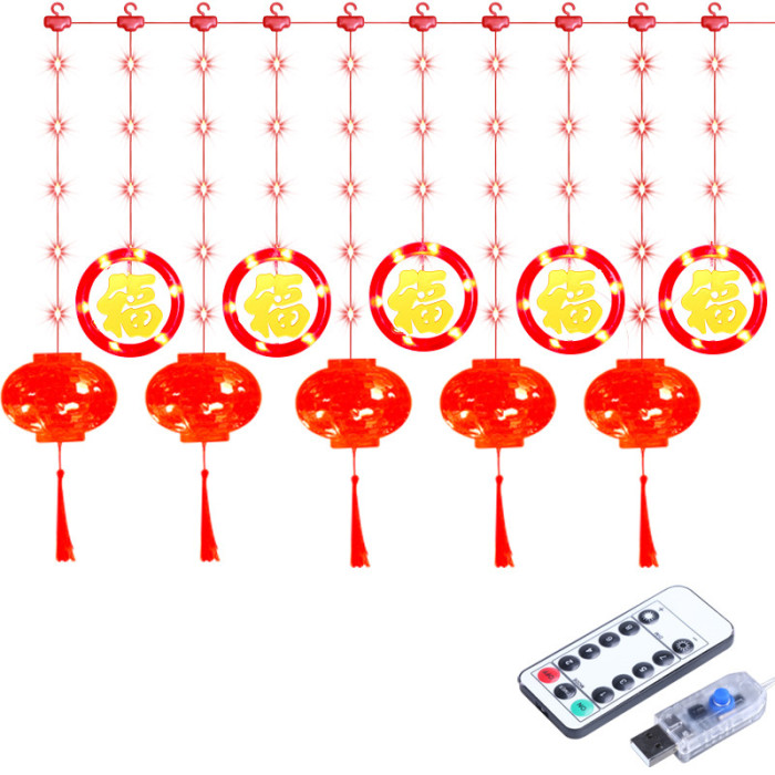 2025新年快樂大小燈籠環福字珠簾燈【USB遙控款】