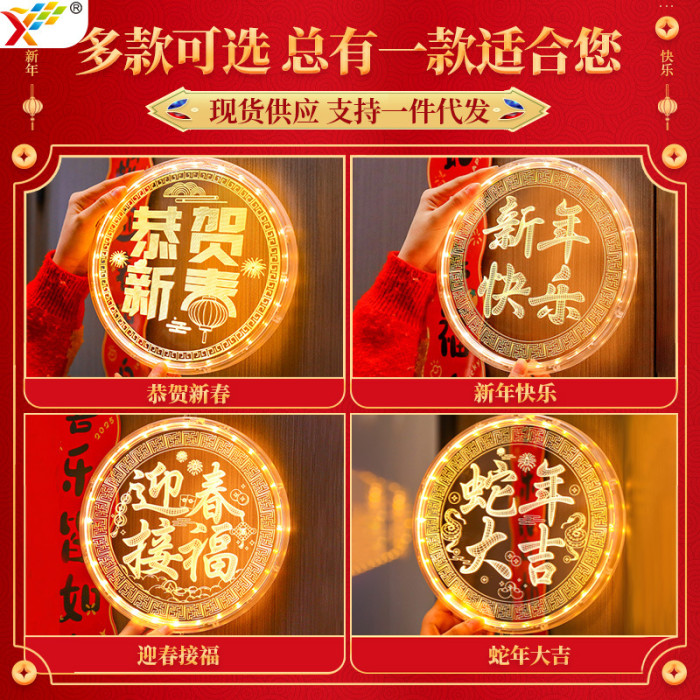 發光恭賀新春led彩燈掛件2025蛇年春節過年喜慶氛圍裝飾布置掛飾