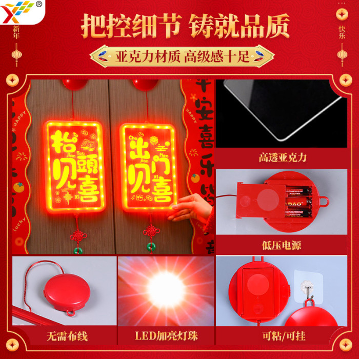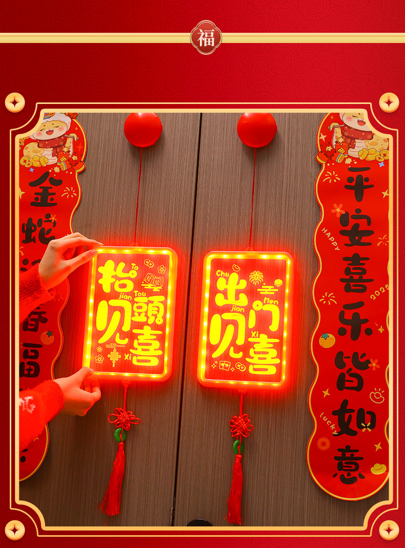 新年發光出門見喜led彩燈掛件蛇年春節氛圍入戶大門裝飾布置掛飾