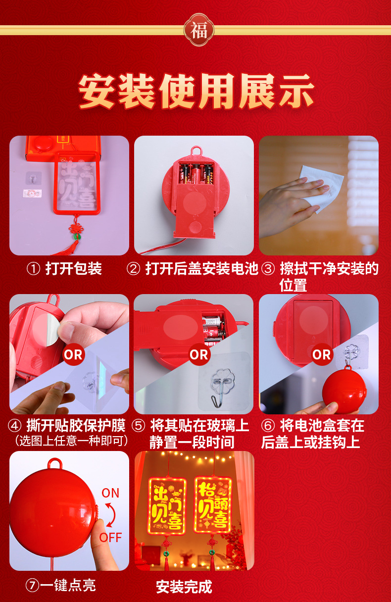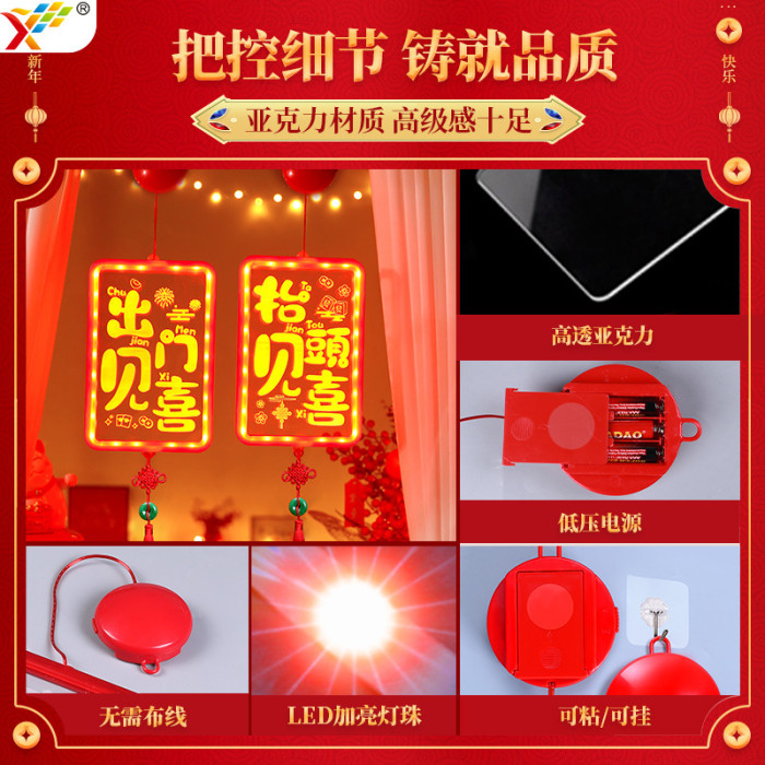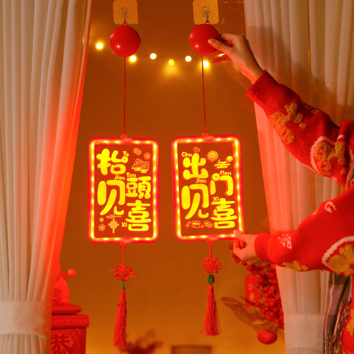 發光出門見喜結掛件2025新年春節氛圍客廳窗戶裝飾布置掛飾