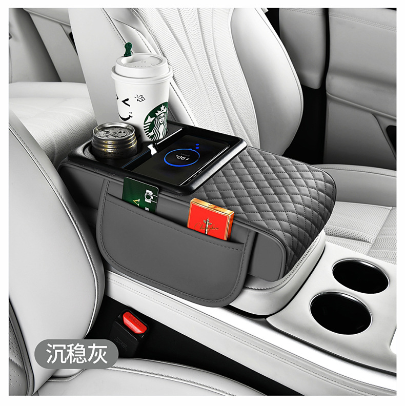 首髮升級款15W無線充電汽車扶手箱墊座椅車充杯架紙巾盒增高