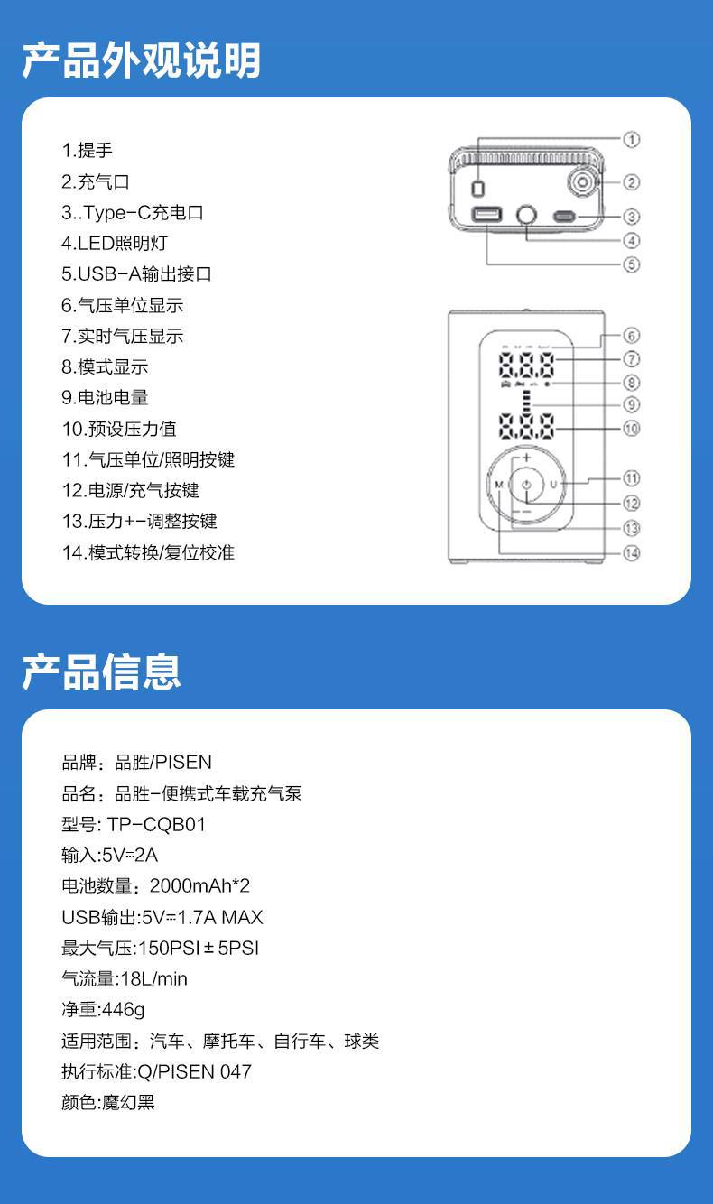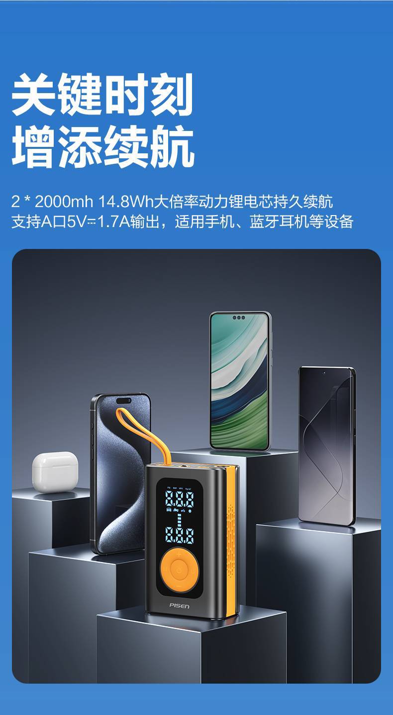 品勝可攜式車用充氣泵無線數顯車輪胎打氣泵電動充氣泵自充汽車批