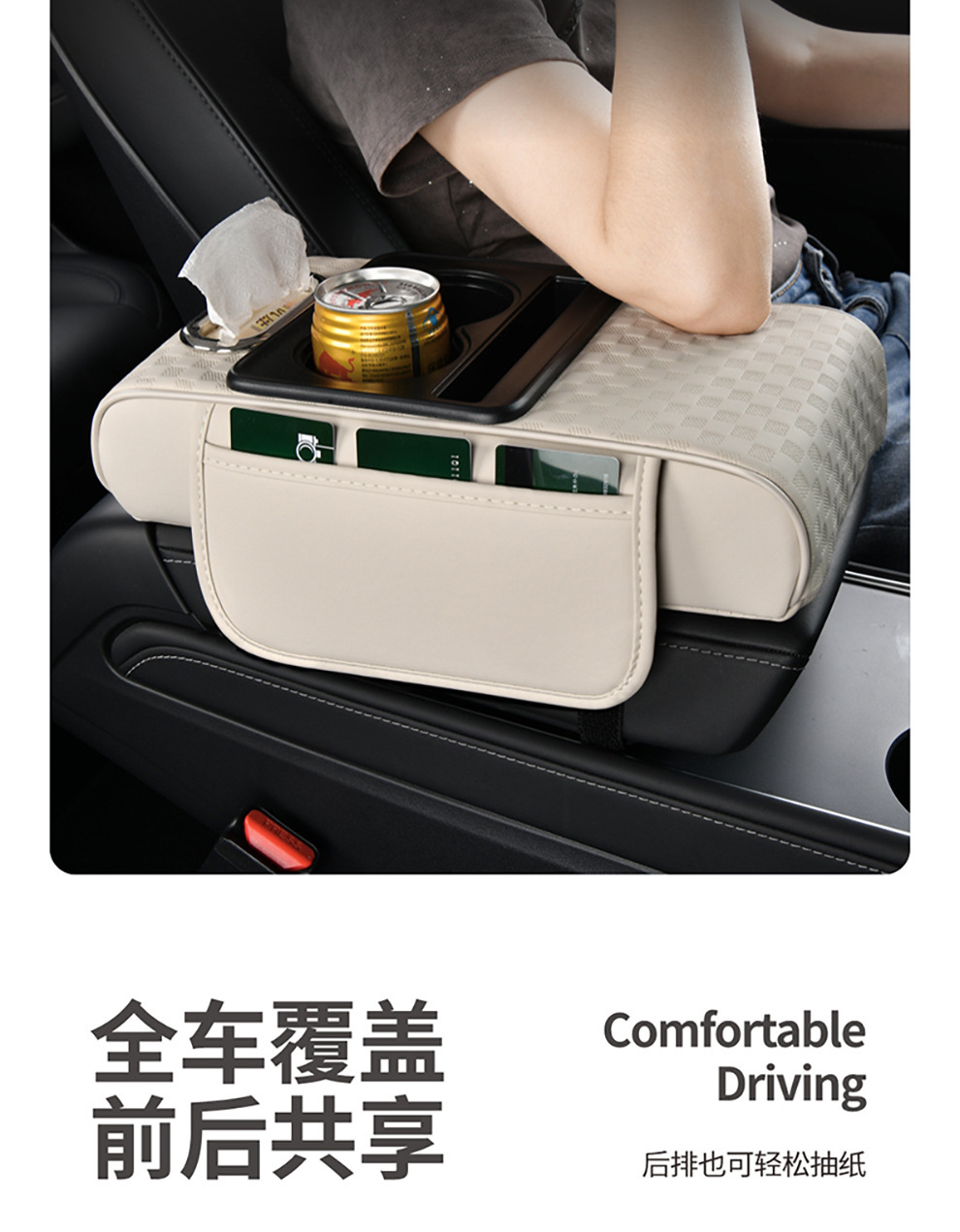 多功能汽車通用扶手箱增高墊車用紙巾盒收納水杯架汽車扶手箱墊