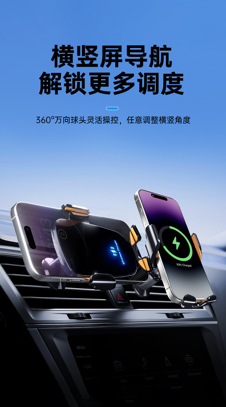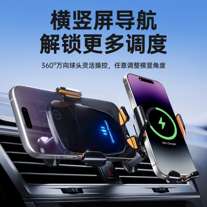 車用手機支架高檔出風口無線充支架25新款手機支架360度旋轉支架