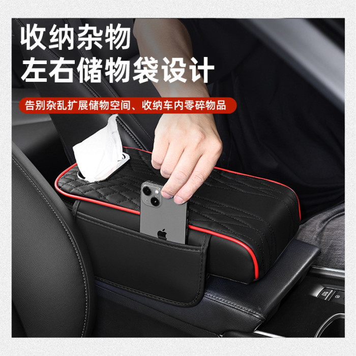 汽車扶手箱墊增高墊納帕皮天使紋款紙巾收納多功能通用車用肘托墊