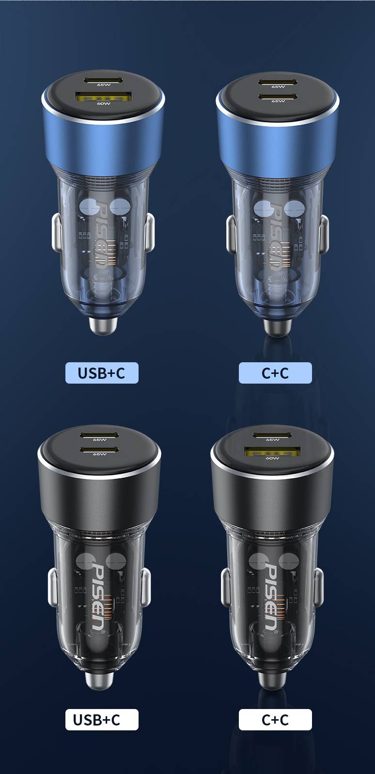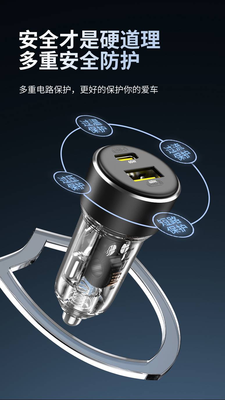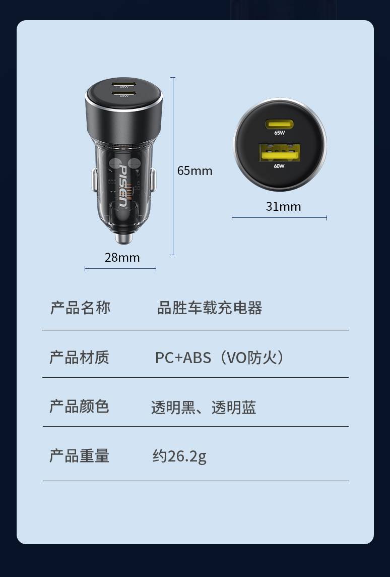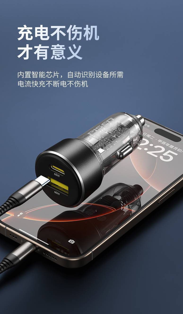 品勝透明車充超級車用快充點菸器蘋果pd65W充電器TYPE-C雙口15Pro