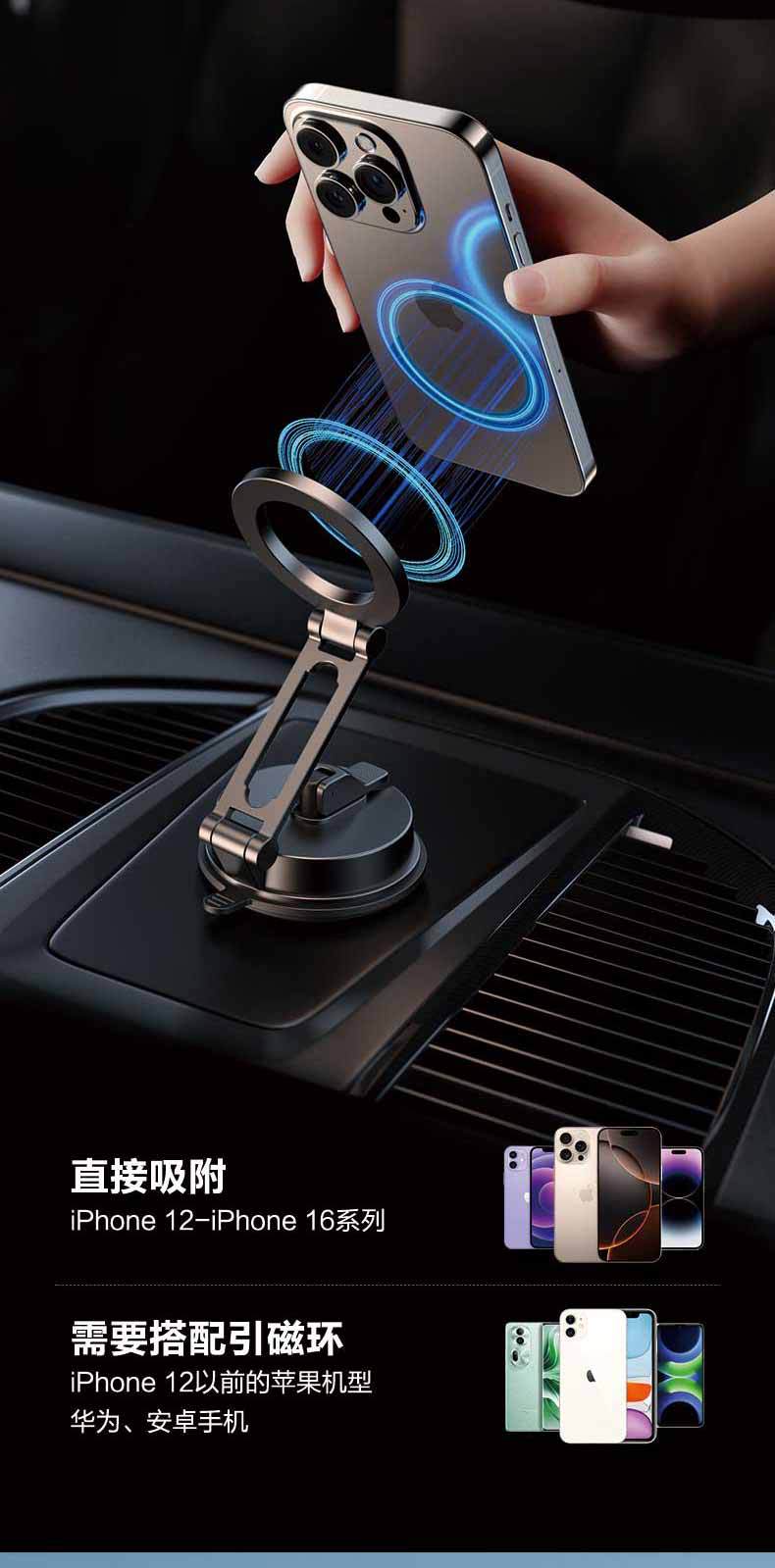 品勝2025新款車用手機支架無線充磁吸多功能角度折曡導航支架桌面