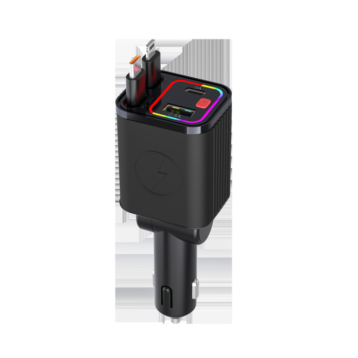四合一伸縮汽車車用手機充電器PD30W超級快充炫彩氛圍燈