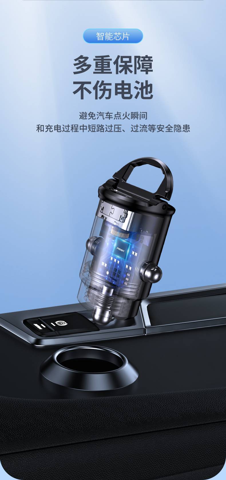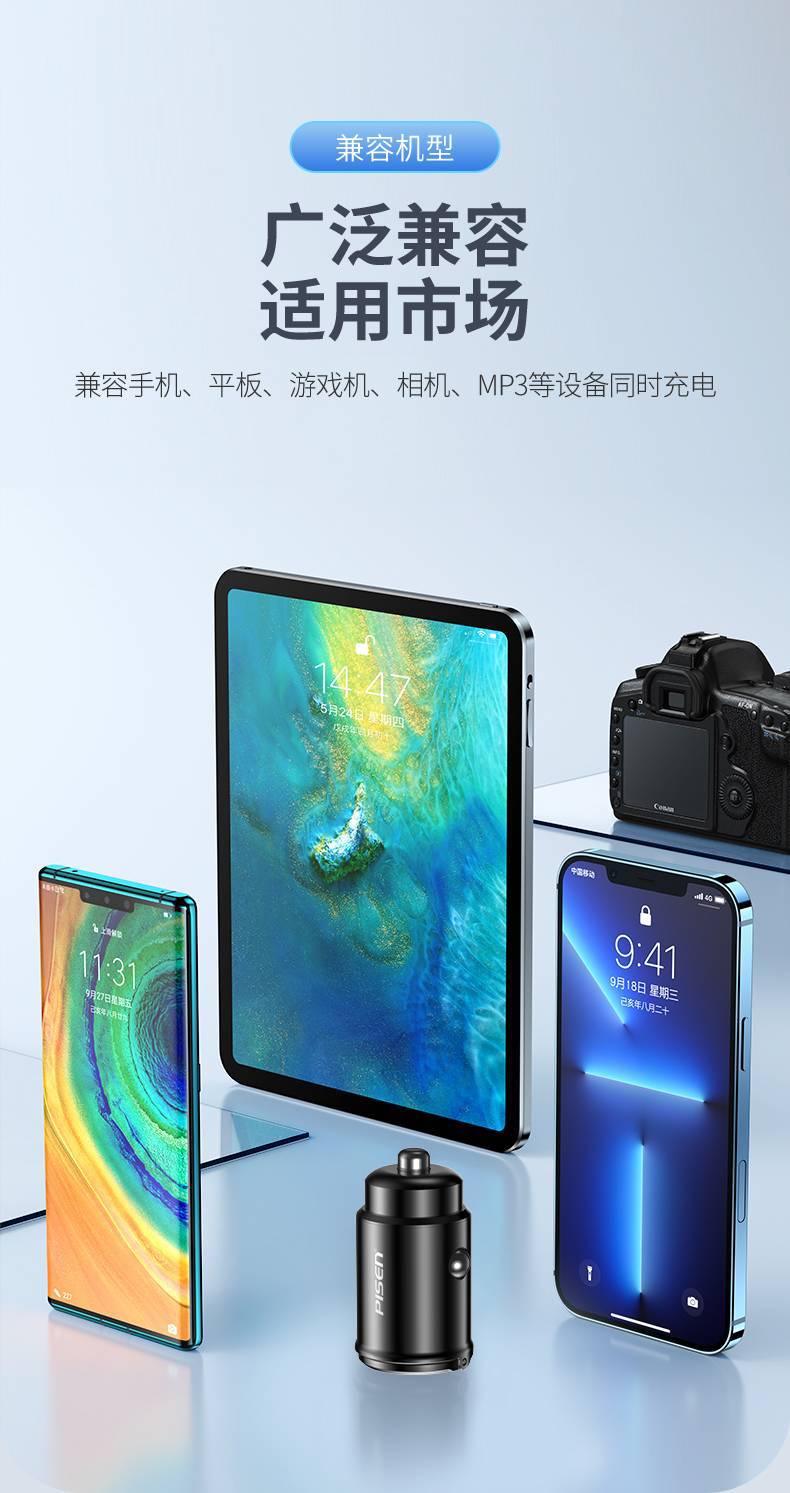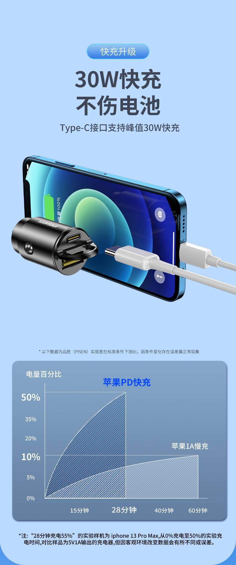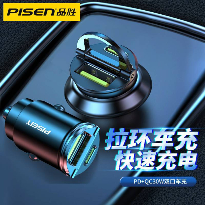 30W迷你拉環車用充電器USB適用iPhone快充PD雙口Type-C車充品勝16