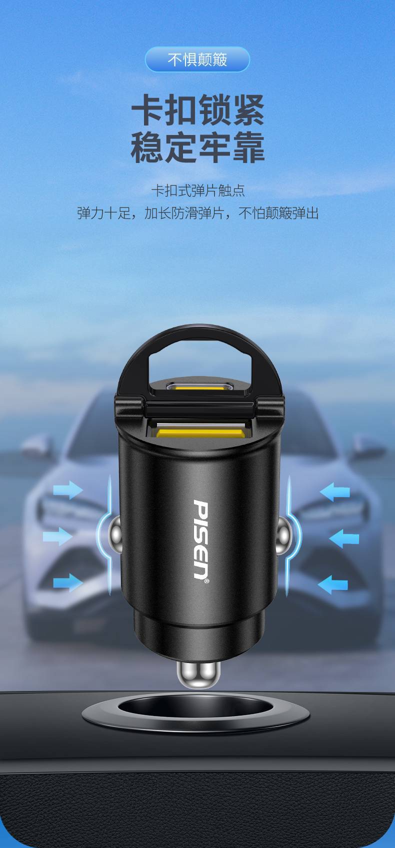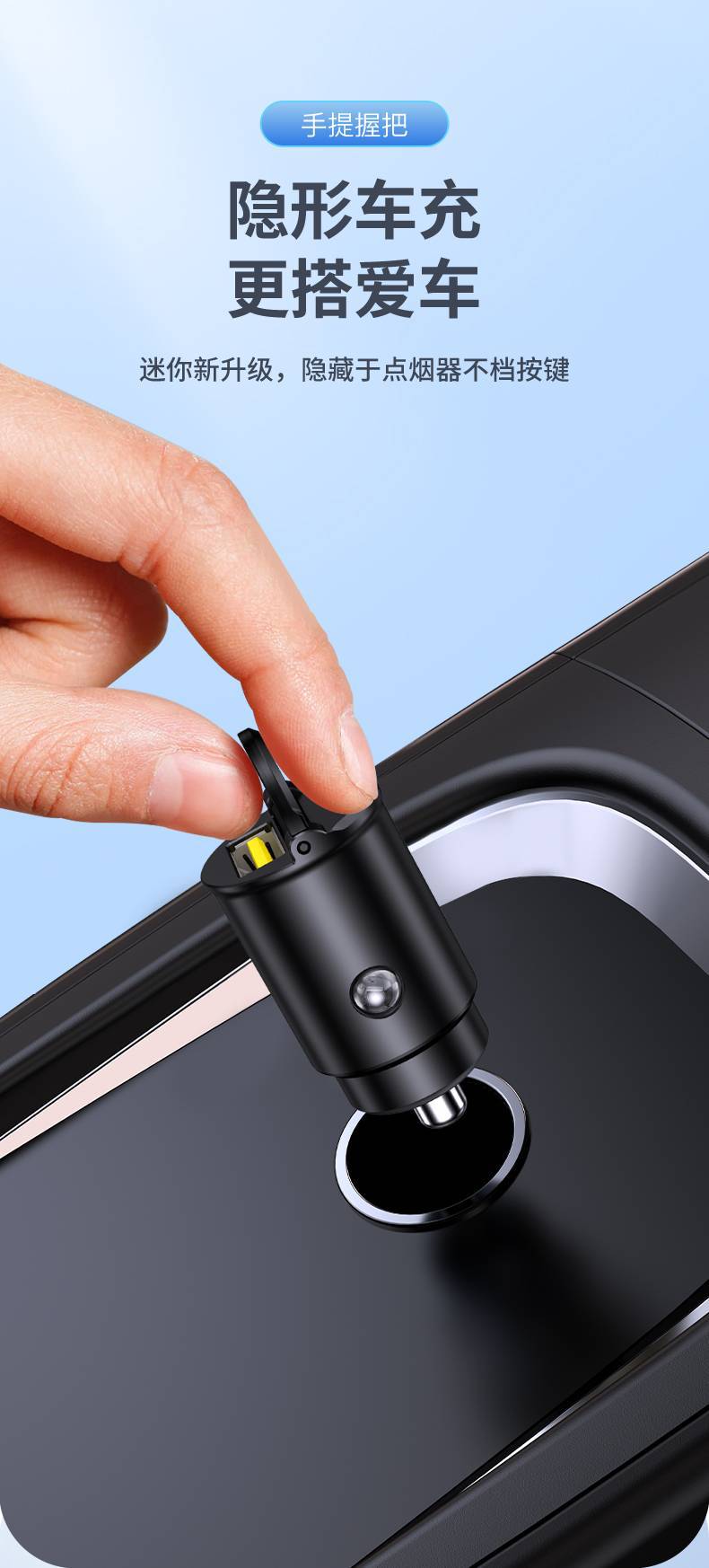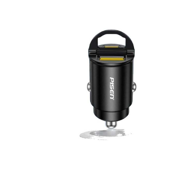 【魔幻黑】金屬拉環車充【A+C雙口/30W快充】迷你隱形