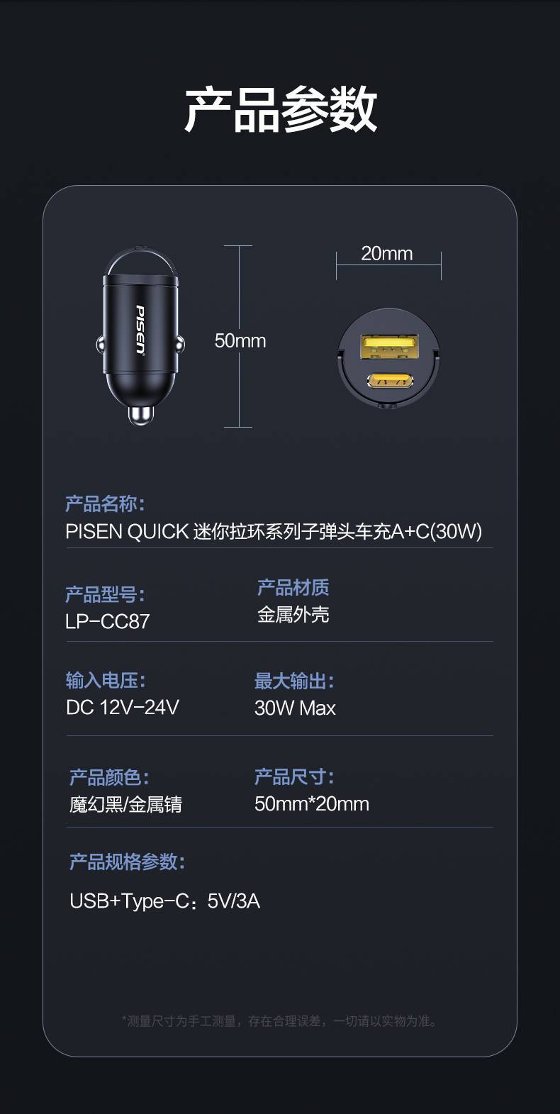 K迷你拉環系列子彈頭車充(LP-CC87/魔幻黑)