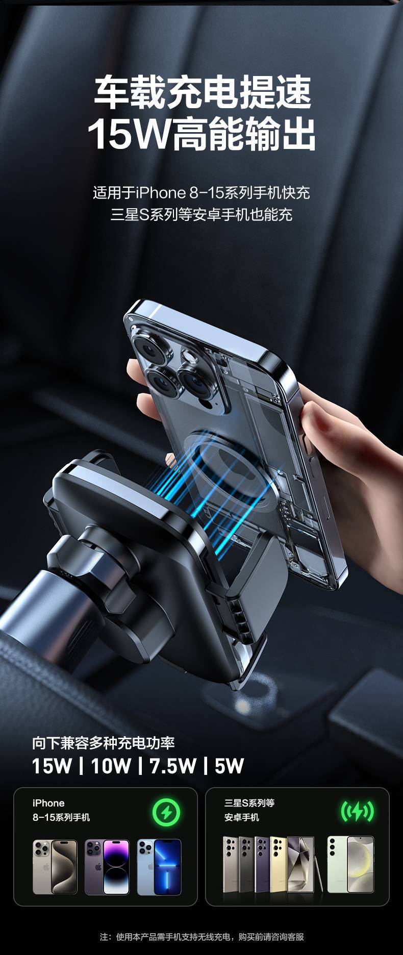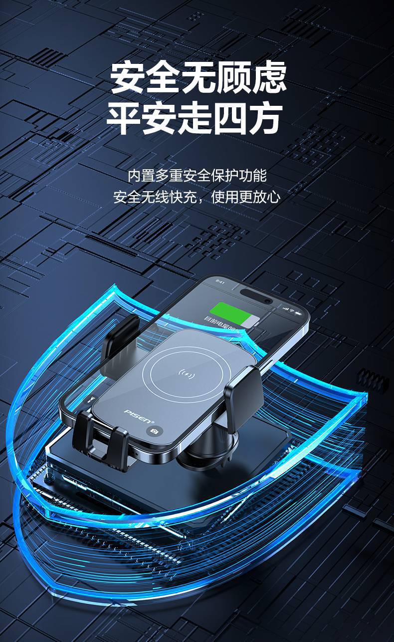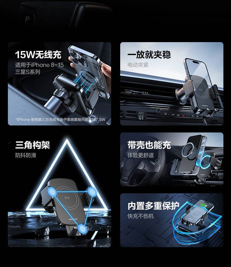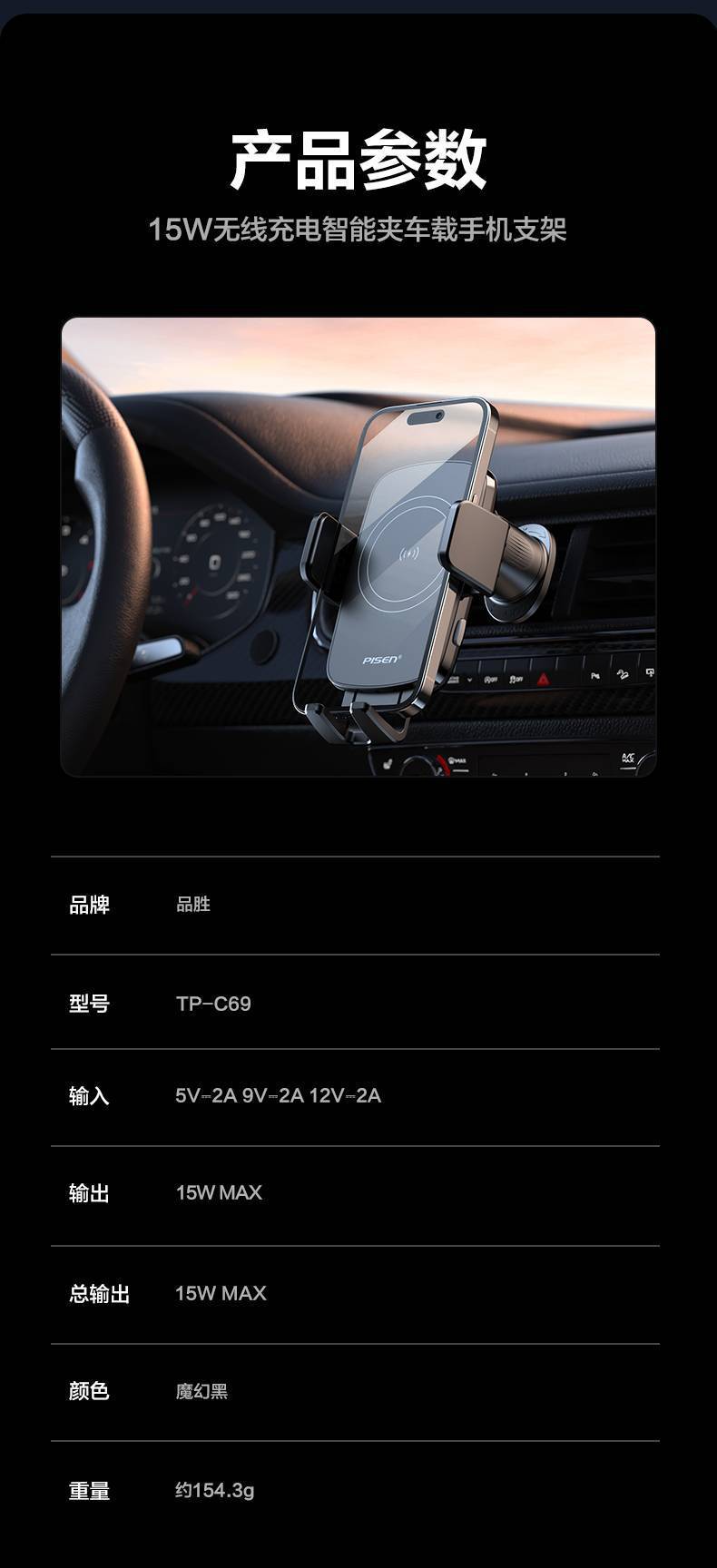 品勝車用無線充手機支架15W無線充電智能夾適用蘋果華爲車用支架