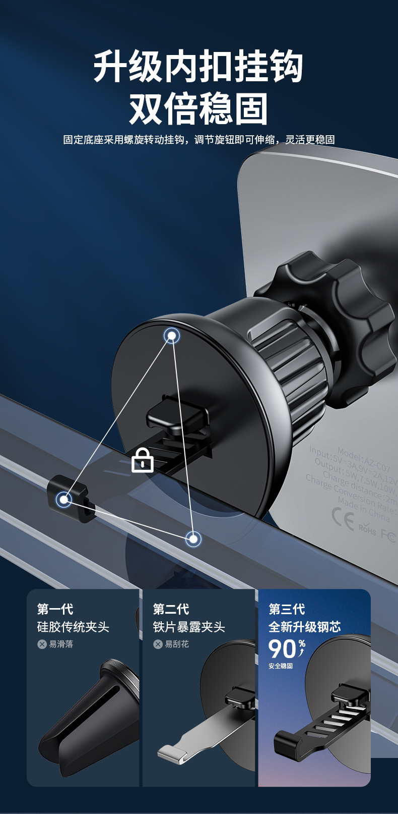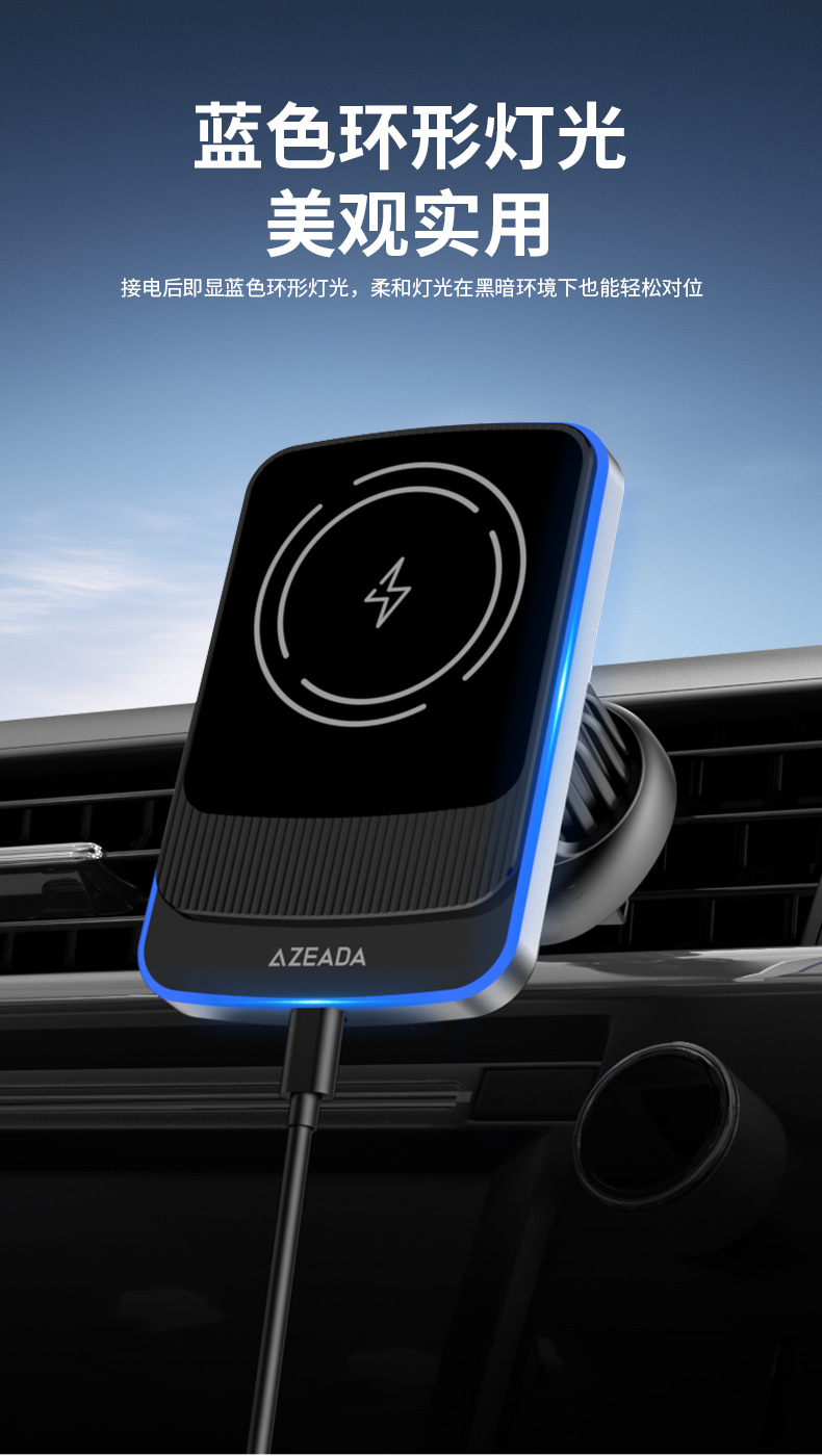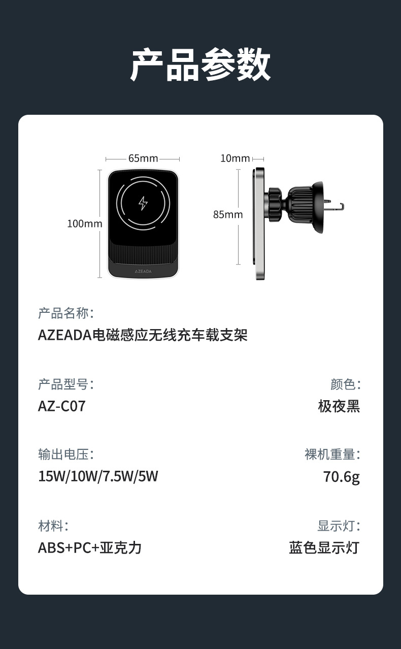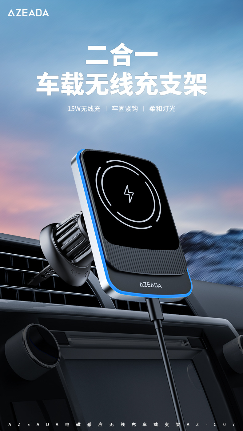 Azeada磁吸15W無線充汽車橫竪通用車用支架汽車導航手機支架C07