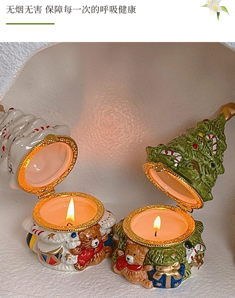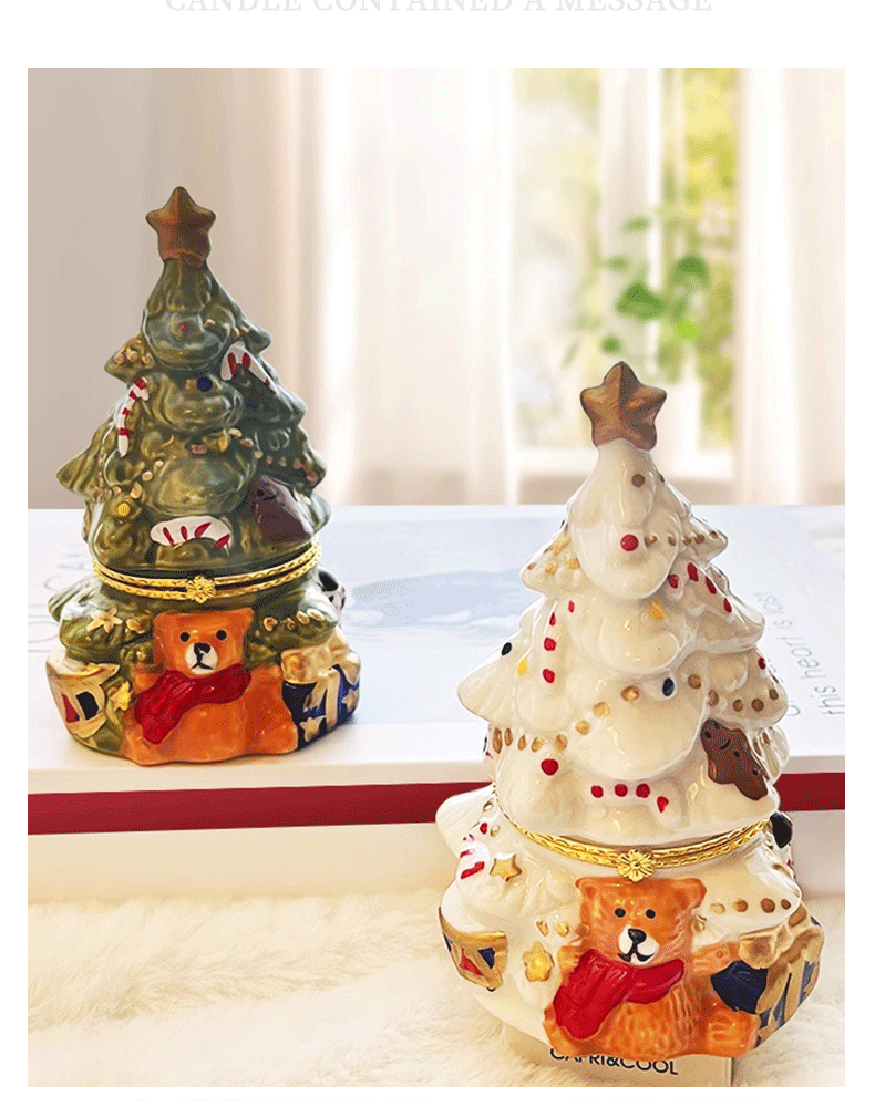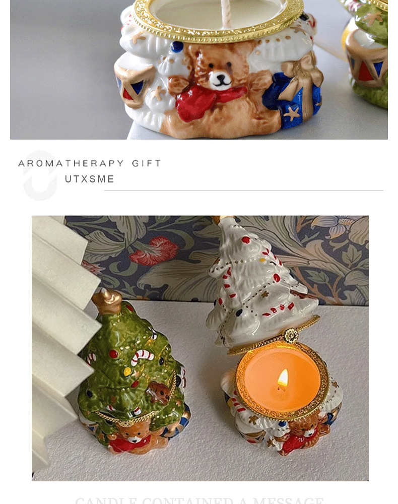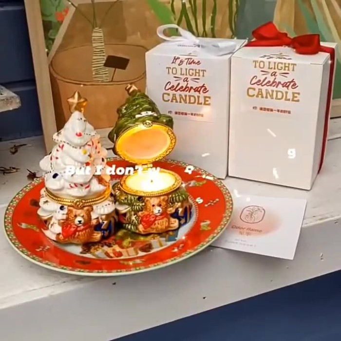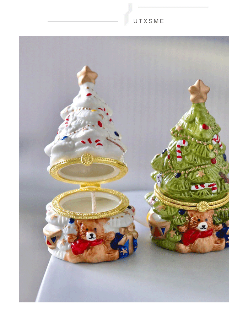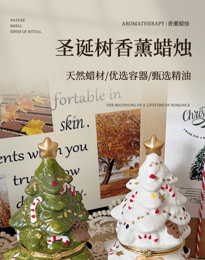 可愛聖誕樹香薰蠟燭復古陶瓷罐蠟燭持久畱香室內聖誕擺件香氛