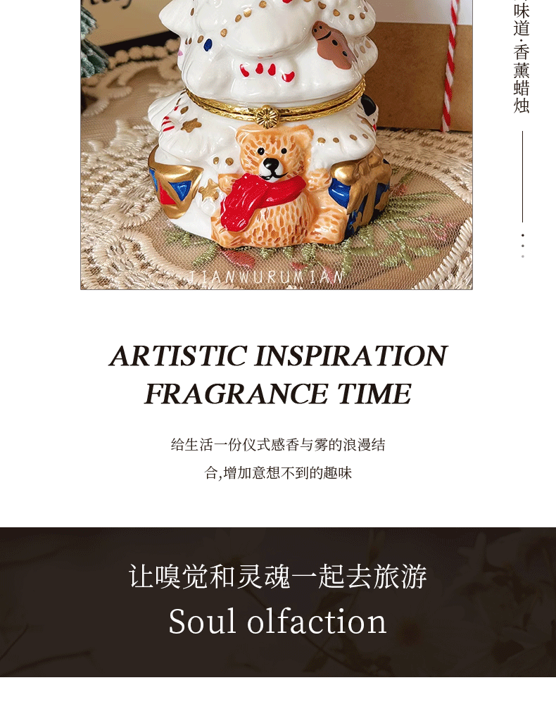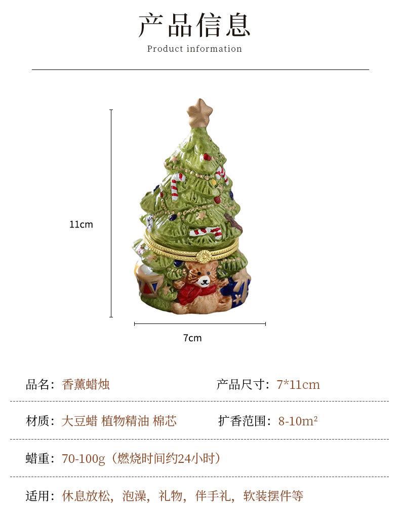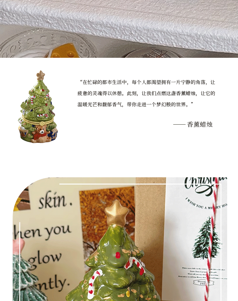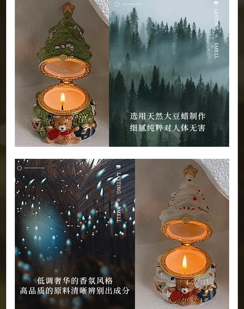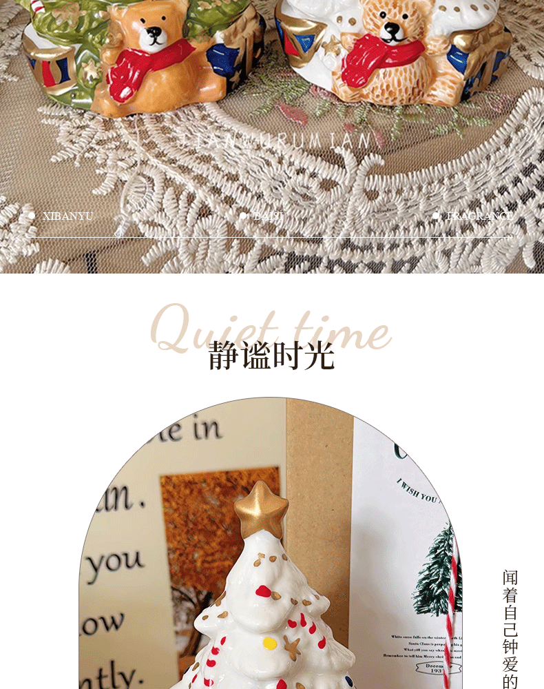 可愛聖誕樹香薰蠟燭復古陶瓷罐蠟燭持久畱香室內聖誕擺件香氛