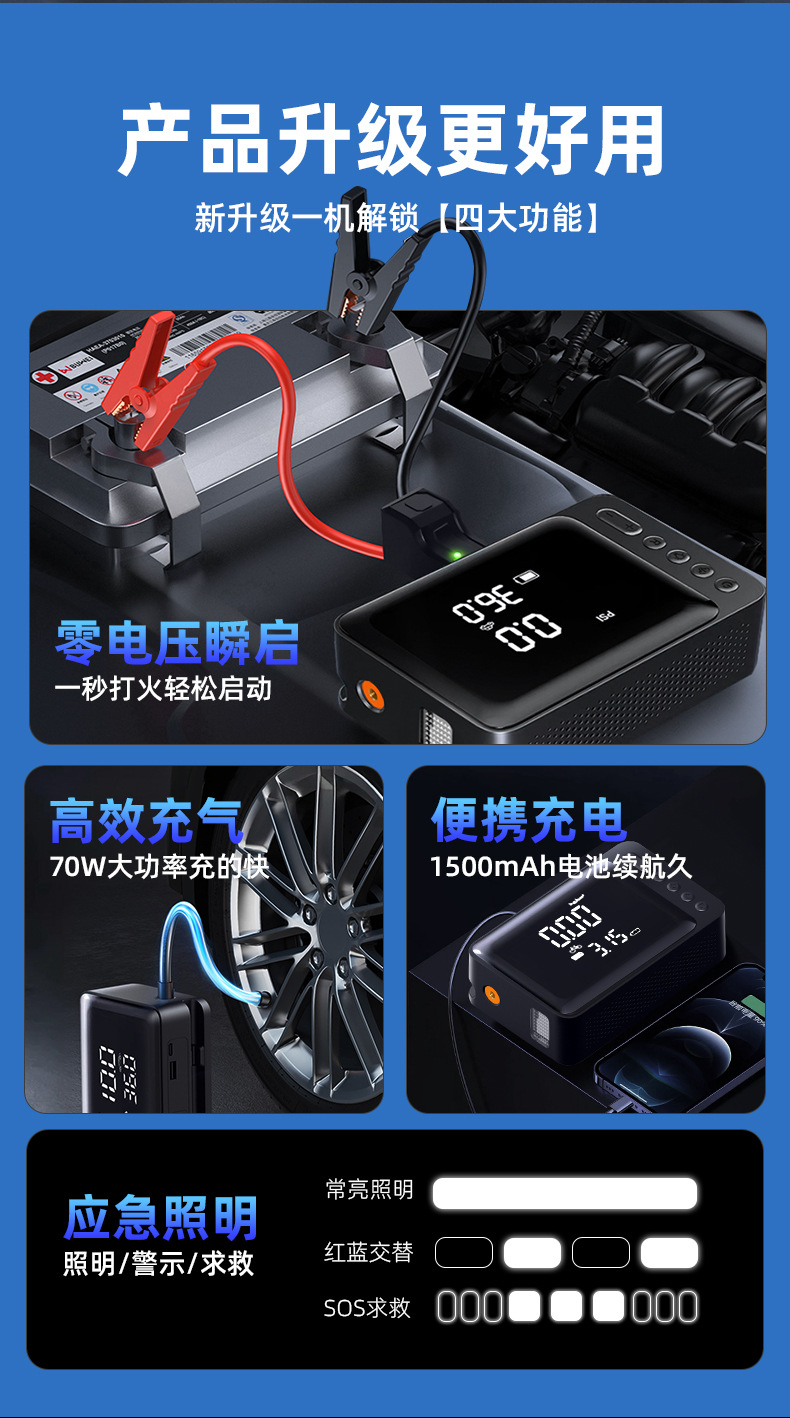 車用充氣泵應急啓動電源無線充電智能電寶一體機汽車輪胎打氣泵